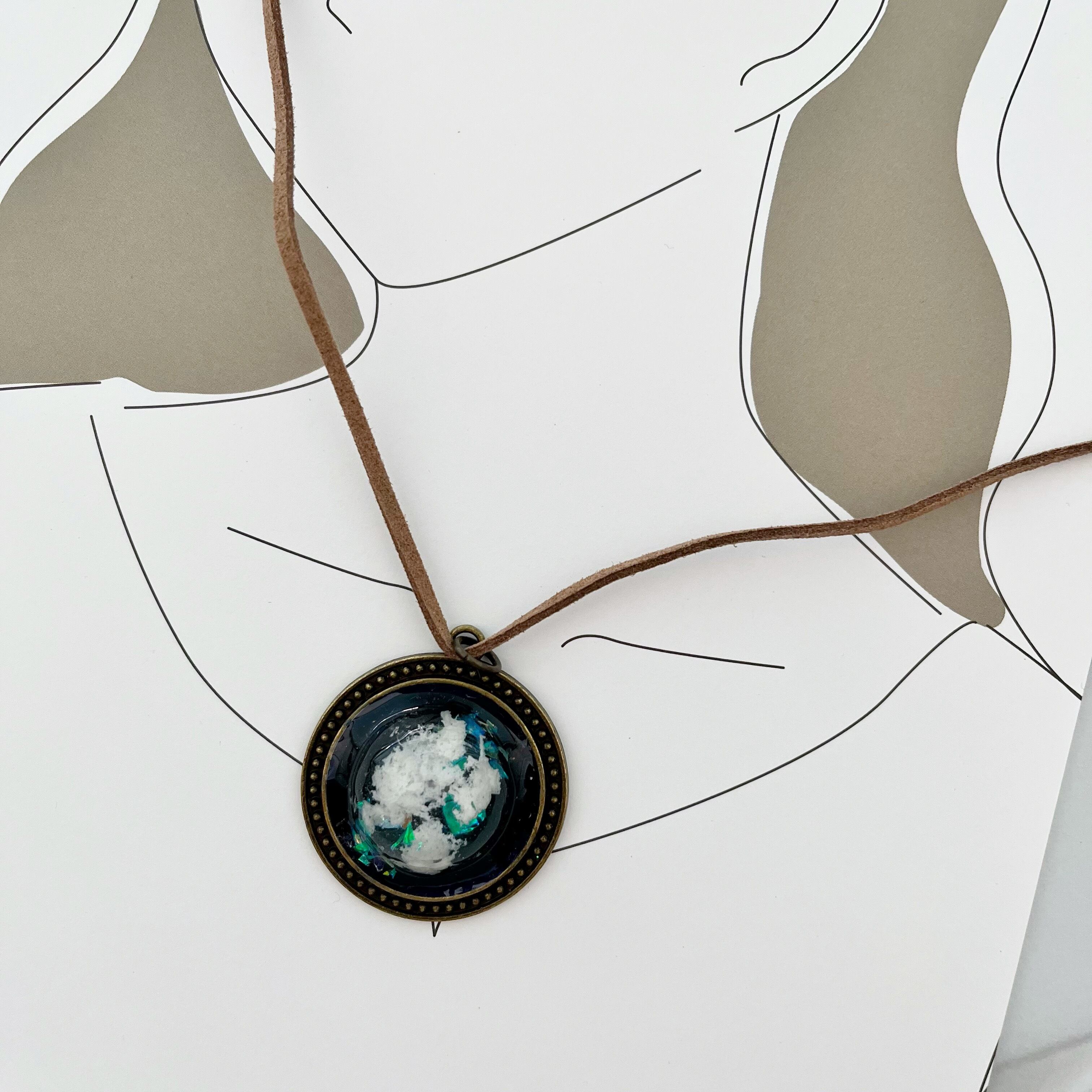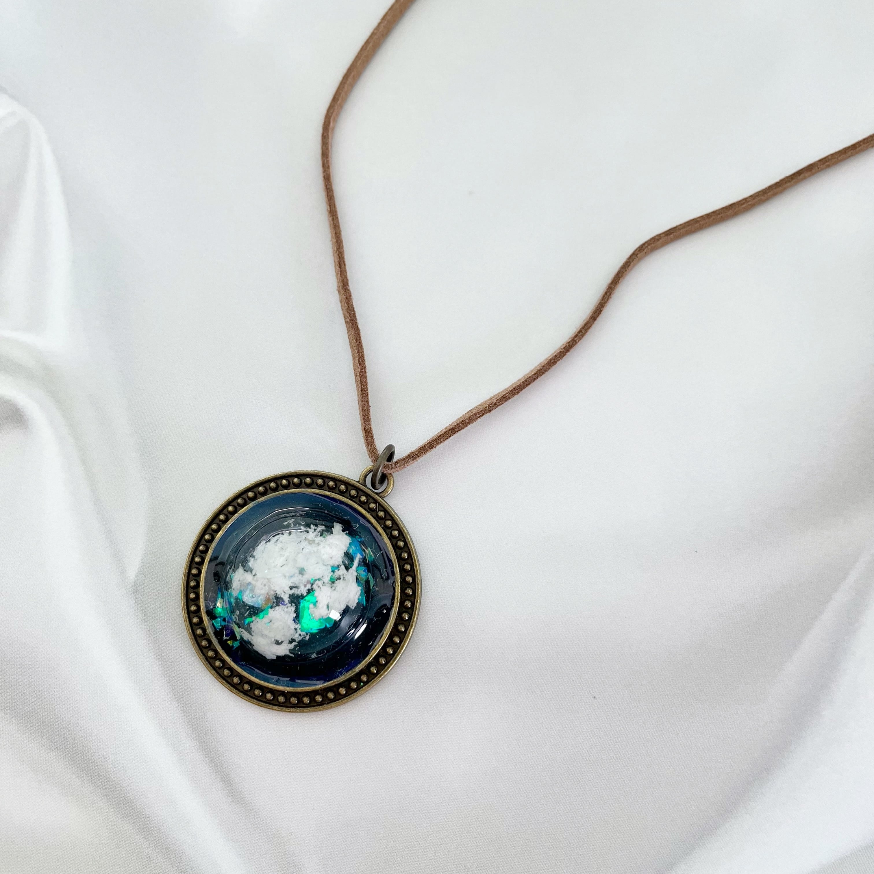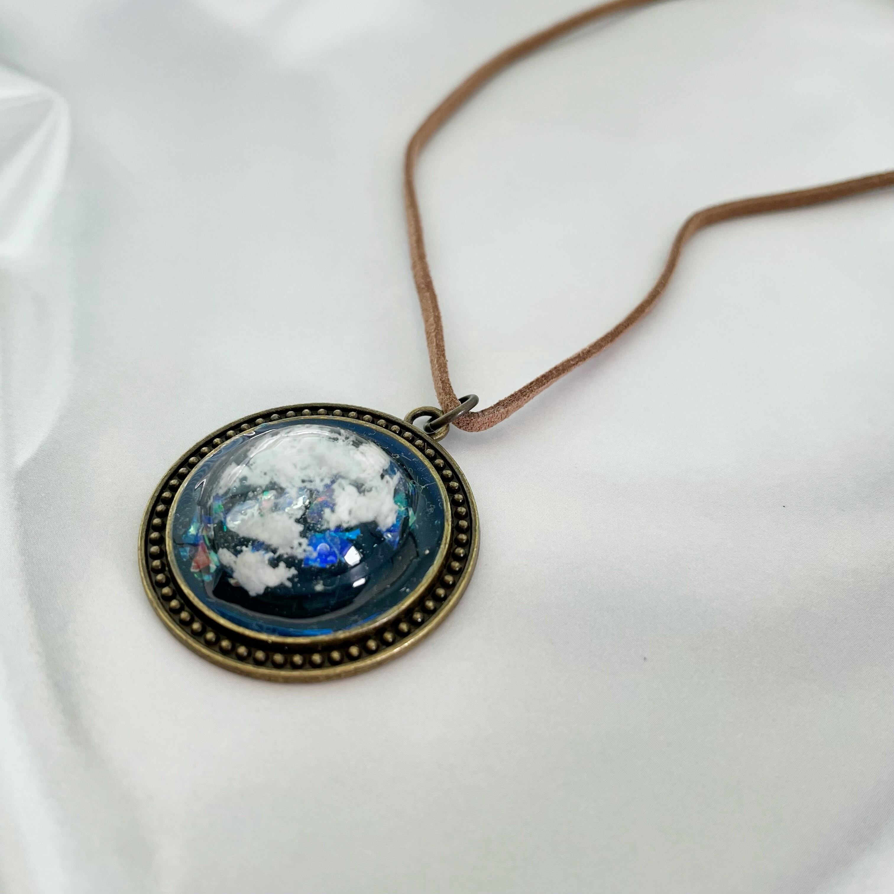 夜空に浮かぶ雲を閉じ込めたようなデザインのペンダント。