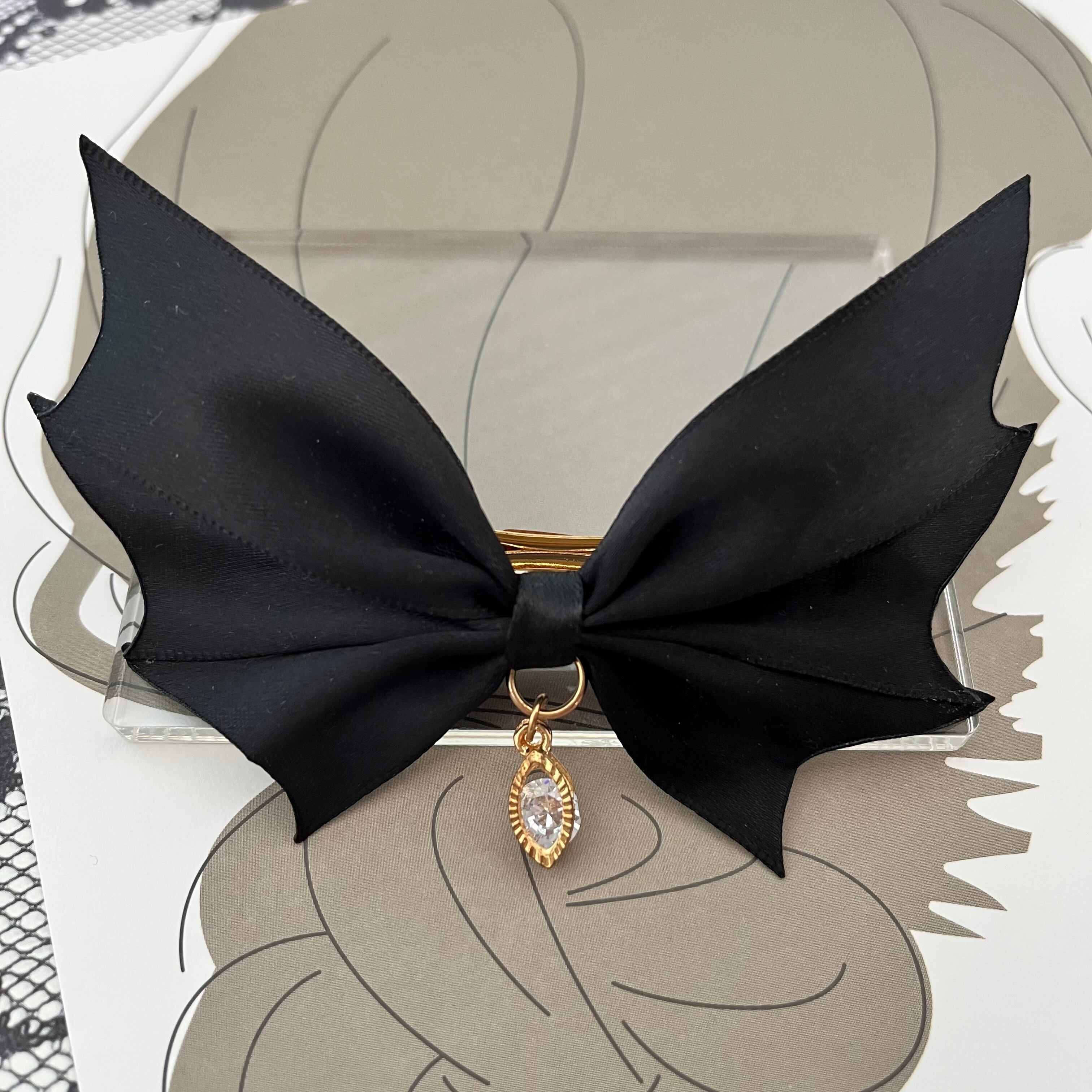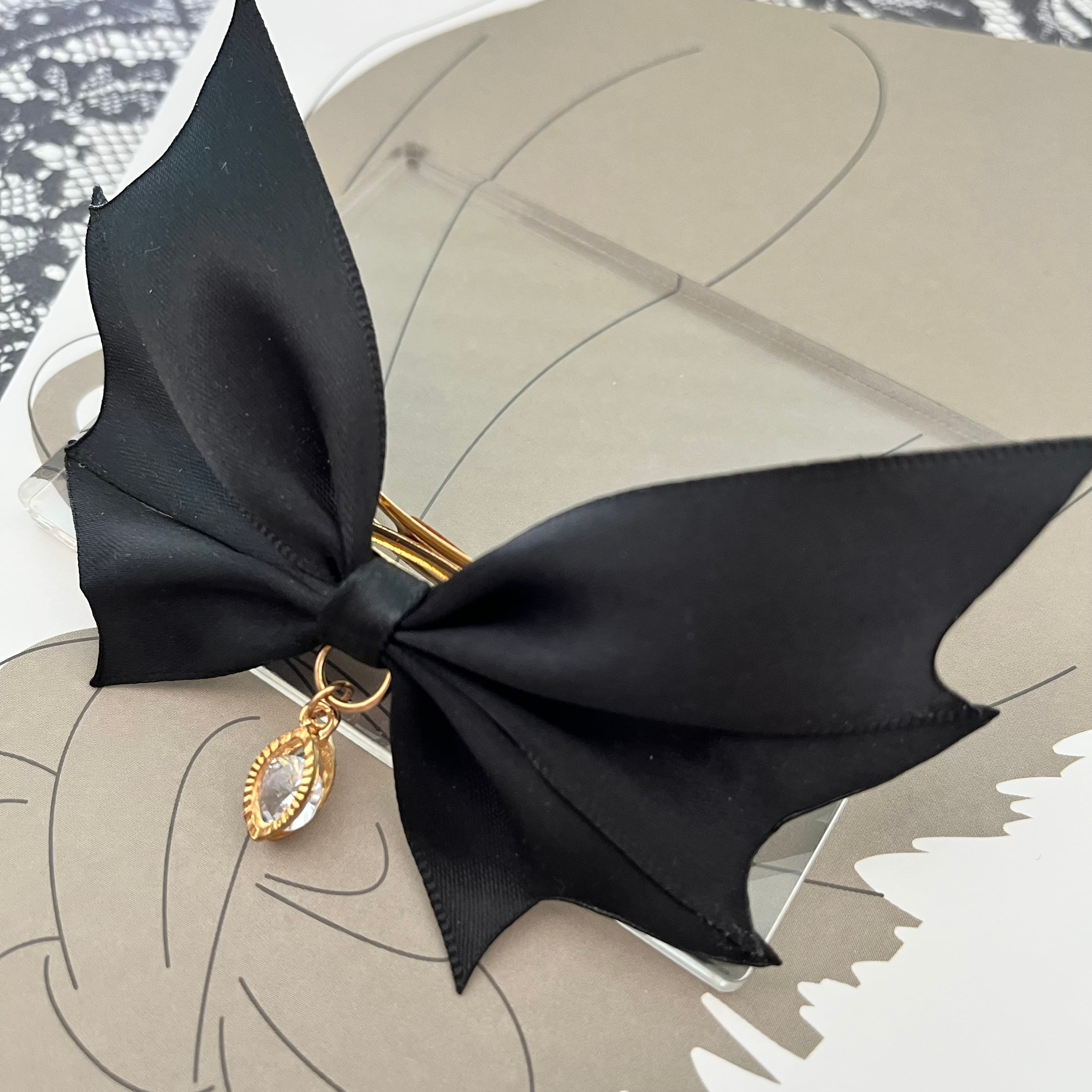 リボンを蝙蝠のような形に加工した、上品かつ個性が光るバレッタです。