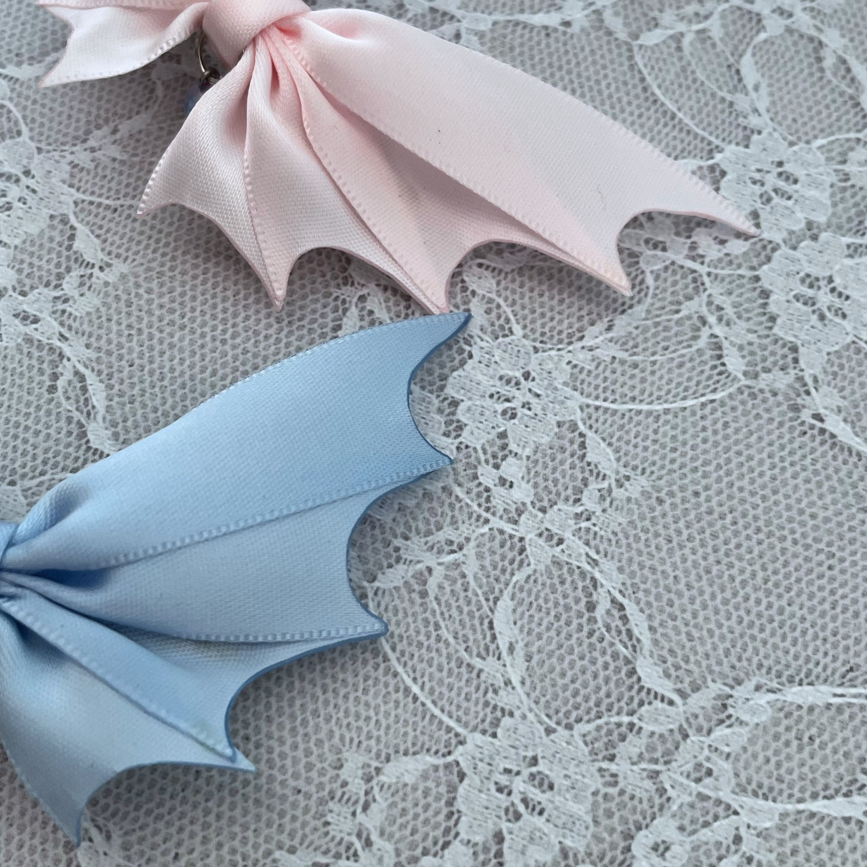 リボンを蝙蝠のような形に加工した、上品かつ個性が光るバレッタです。
