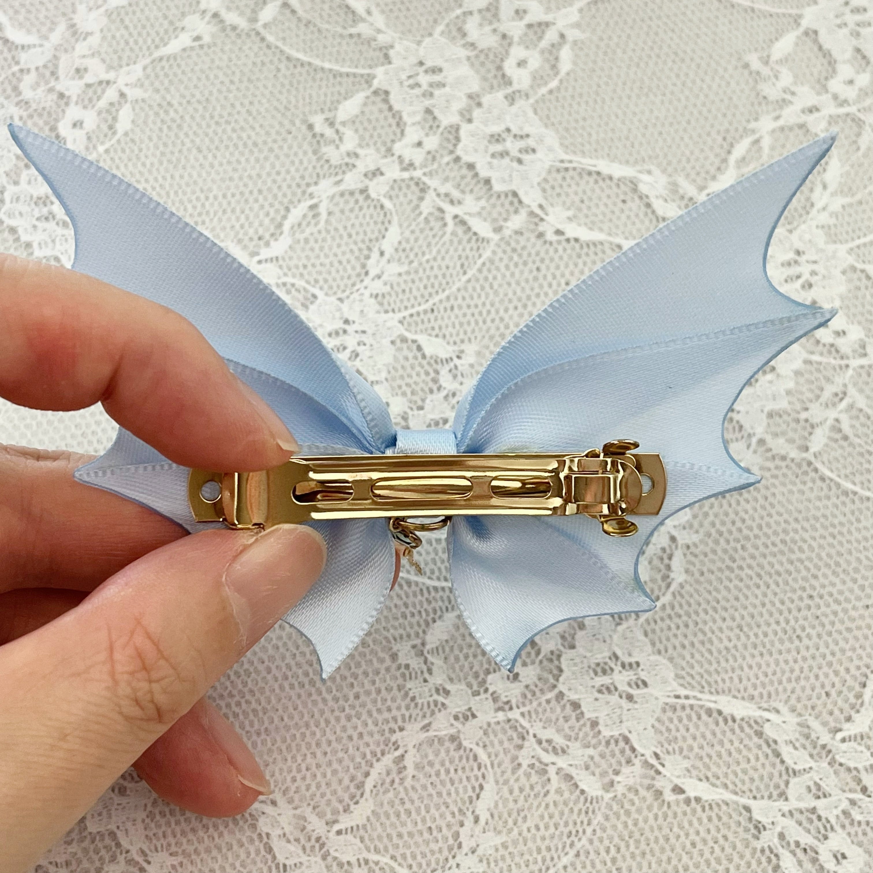 リボンを蝙蝠のような形に加工した、上品かつ個性が光るバレッタです。