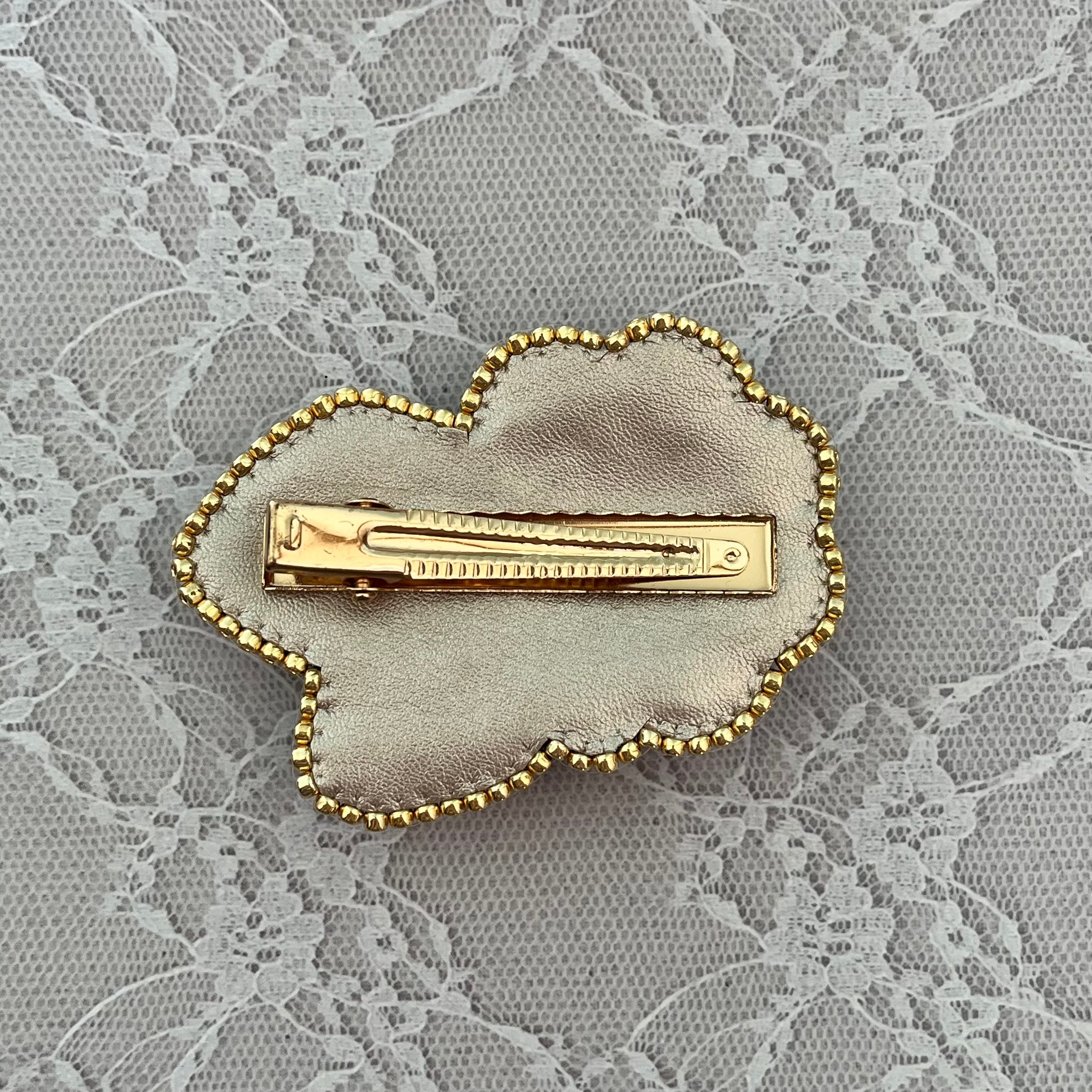 手編みのレース編みパーツとビーズ刺繍を組み合わせたヘアクリップです。