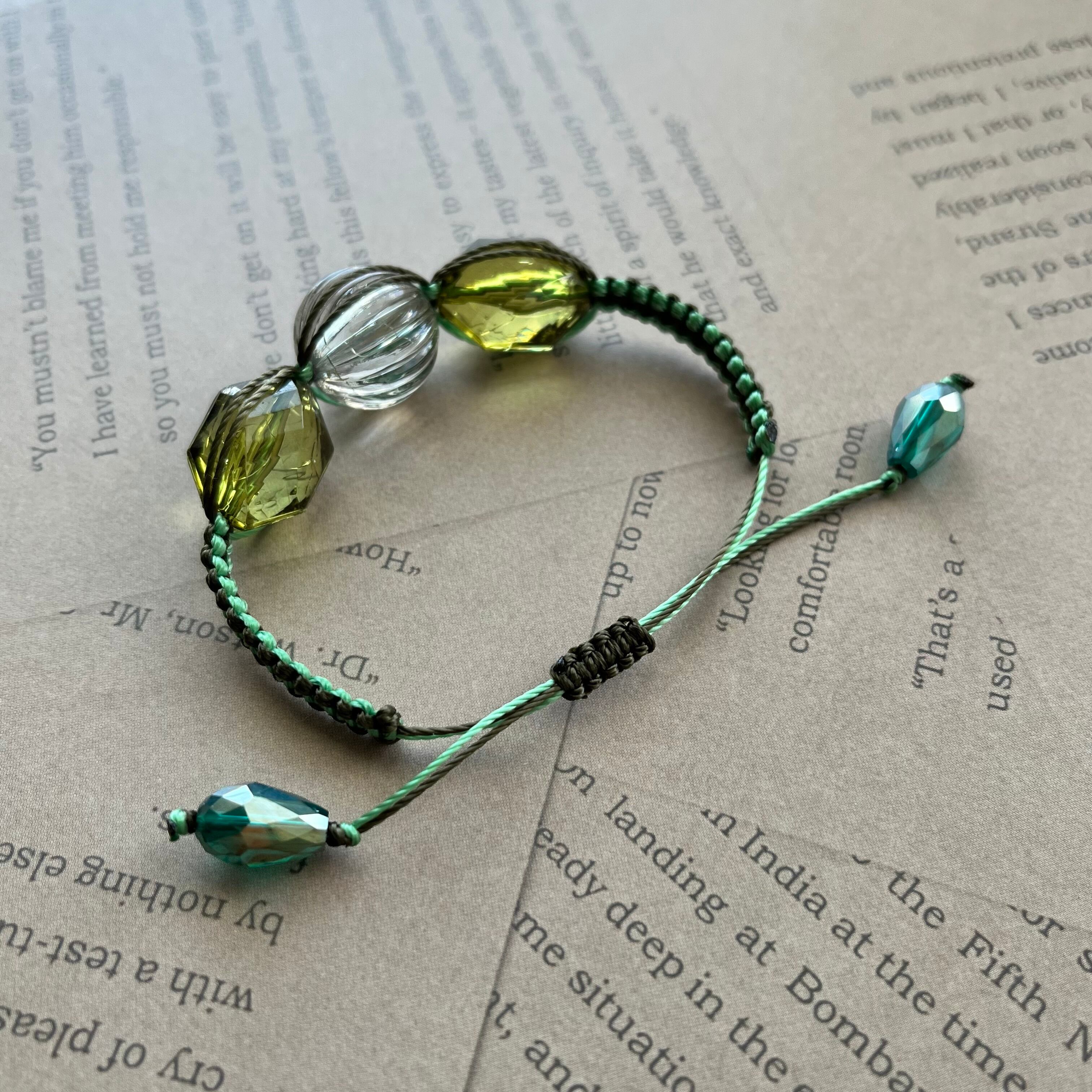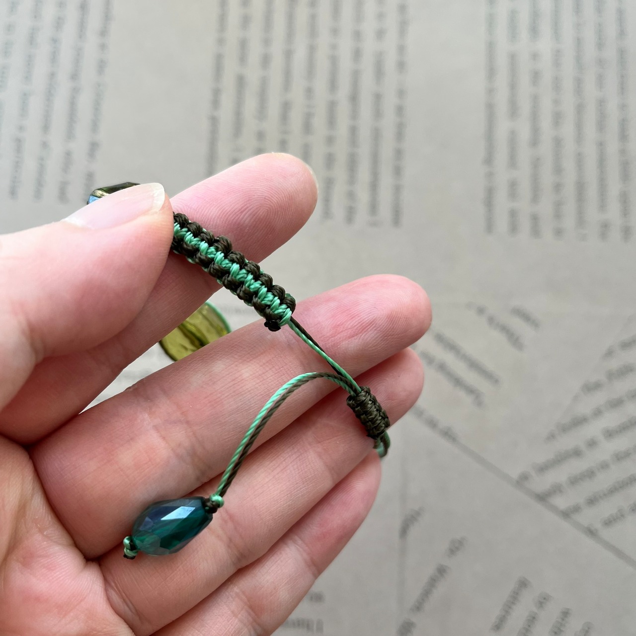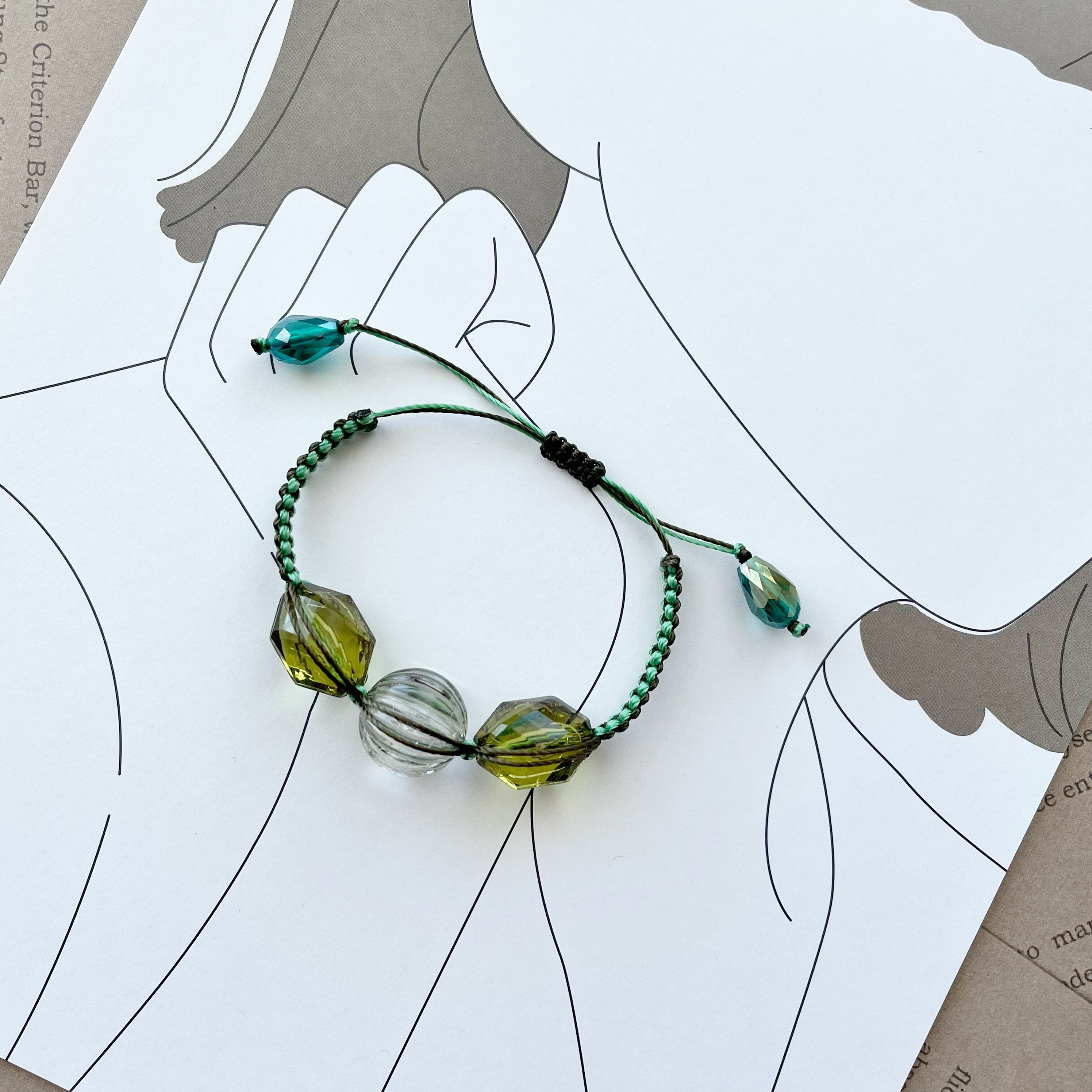 留め具両端を引っ張ることでサイズ調整が可能な、フリーサイズタイプのブレスレットとなります。